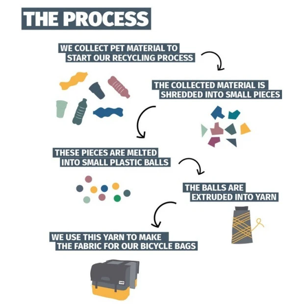 Les sacoches de vélo Urban Proof sont fabriquées à partir de PET recyclé (RPET), garantissant une empreinte écologique minime. Ces sacoches solides au dos et au fond renforcés vous accompagneront dans toutes vos sorties shopping et au marché. Grâce à leurs crochets chromés, elles sont faciles et rapide à ouvrir et à fermer. Le RPET est imperméable, protégeant le contenu que vous glisserez à l’intérieur, et est associé à une doublure imperméable à l’intérieur pour une protection supplémentaire de vos affaires. Grâce aux sangles de fixation, vous pouvez facilement attacher la double sacoche au porte-bagages de votre vélo.