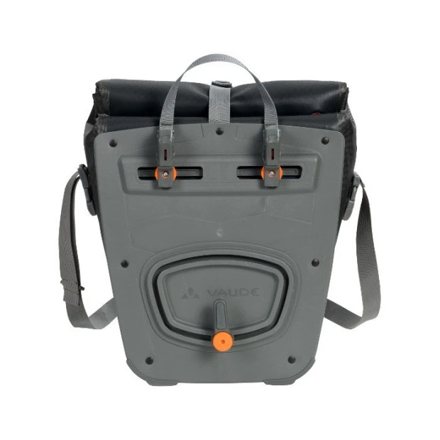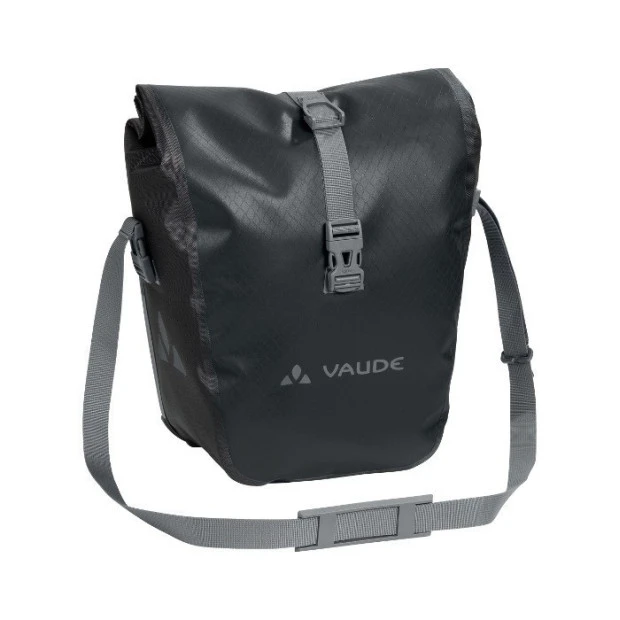La paire de sacoches Vaude Aqua Front pour roue est constituée d’un fermeture par enroulement, d’un poche intérieure et est bien sur étanche. Elles sont ajustables à l’aide de petites roues et peuvent rapidement et facilement être fixées et enlevées. De plus le label Green Shape Vaude vous garantit des produits écologiques.