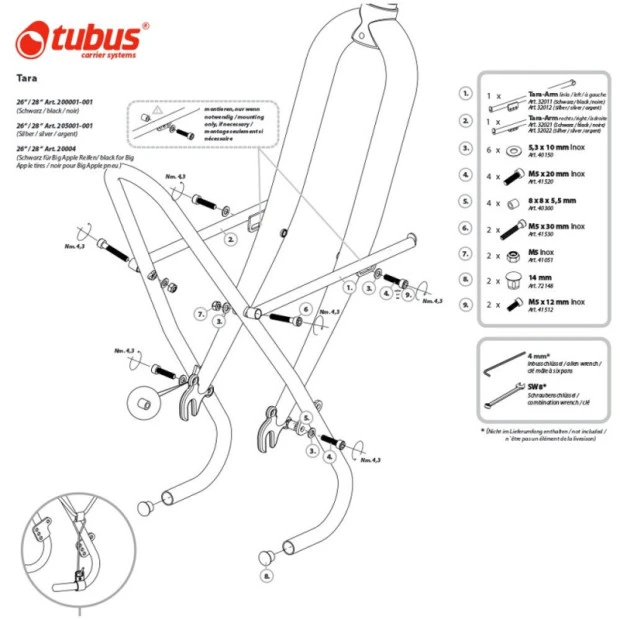Avant : 26′ [559mm] – 27.5′ [584mm] & 28′ [622mm] livré avec :