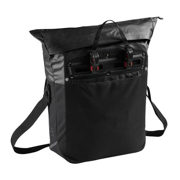 La sacoche-cabas Vaude CityShop sera le fidèle compagnon de vos virées shopping comme de vos déplacements quotidiens entre votre domicile et le travail. D’une capacité de 24 litres, il est efficace sur les marchés. Clipsable au porte-bagages à l’aide du système de fixation par crochets QRM, cette sacoche est dotée d’une bandoulière réglable et de deux poignées escamotables, pour être portée en bandoulière. Elle se ferme à l’aide d’une fermeture à glissière sur le haut. L’intérieur renferme un compartiment non rembourré pouvant accueillir une tablette et un compartimentage en filet muni d’une fermeture éclair pour les accessoires comme le porte-monnaie, le smartphone et les stylos.