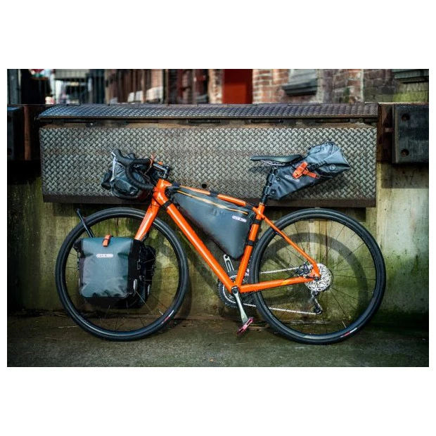 La sacoche de cadre Ortlieb Frame-Pack vous permettra de partir à la découverte de la nature avec un minimum de bagages. Son centre de gravité bas vous offre la possibilité de ranger les pièces lourdes de votre équipement, comme les outils, le réchaud ou des provisions. Combinant fermeture à glissière et toile de Nylon étanche à l’eau éprouvée, son contenu restera absolument au sec, même dans les pires conditions météo. Son montage est on ne peut plus simple grâce aux fermetures auto-agrippantes robustes et super adhérentes fixées à la barre supérieure du cadre, et aux bandes latérales variables sur le tube de la selle ou le tube inférieur.