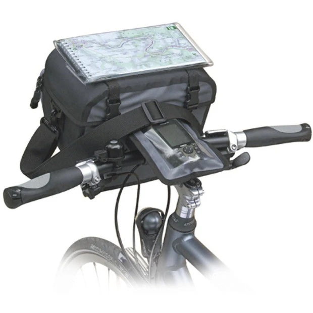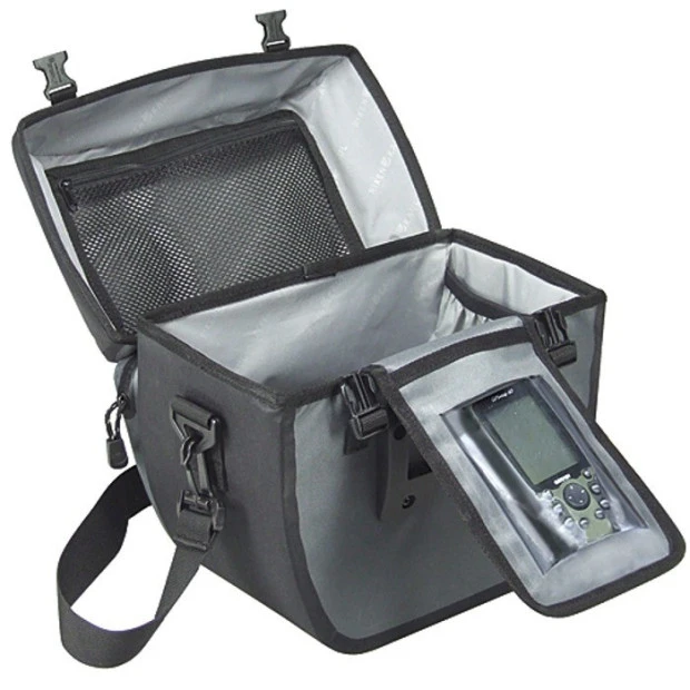 Avec compartiment dépliant pour système de navigation. La poche filet avant permet de stocker de petits objets tout en les gardant accessibles. Le porte-carte transparent est facilement fixé sur le dessus grâce à des velcros. Le compartiment principal avec doublure comporte de petites poches intérieures et une large poche filet sous le rabat. Comprend une bandoulière détachable, une plaque de fixation et une fixation KLICKfix pour cintre.
