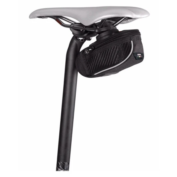 La sacoche de selle Scicon Compact 430 Carbone Pro est la version de taille moyenne des sacs Champions avec un design innovant italien. Elle permet de transporter l’essentiel aux menues réparations (chambre à air, outil multifonction, barres énergétiques. Elle est dotée d’un design élégant et aérodynamique et du système de fixation Roller 2.1, permettant de l’installer aux rails de selle sans outil. Cette sacoche est fabriqué en fibre de carbone et Cordura Dupont, pour grande longévité.