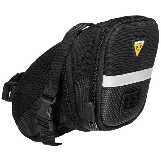 La sacoche de selle Topeak Aero Wedge vous permettra d’emporter avec vous tout le nécessaire aux menues réparations de votre vélo (outil multifonction, chambre à air, cartouche de CO2, etc.). Elle se fixe aisément aux rails et au tube de selle grâce à un système de sangles.