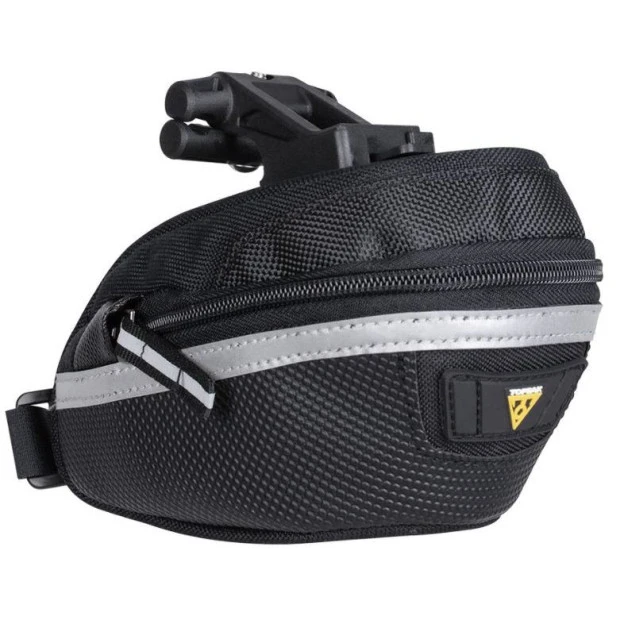 La sacoche de selle Topeak Wedge Pack II vous permettra d’emporter avec vous tous les outils nécessaires aux menues réparations de votre vélo (outil multifonction, chambre à air, cartouche de CO2, etc.). Fabriquée en Nylon 1000 Denier, elle est dotée d’une fermeture éclair et d’une bande réfléchissante, vous permettant d’être visible dans l’obscurité. Elle se fixe et s’enlève rapidement grâce au système QuickClick.
