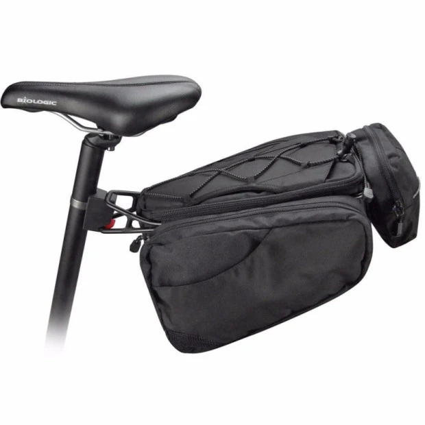 Un look sportif et beaucoup d’espace pour cette sacoche Klickfix de tige de selle.