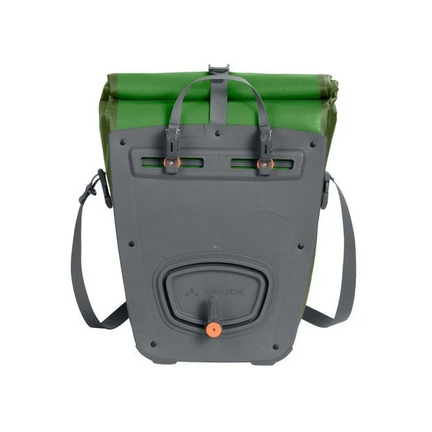 La sacoche de voyage Vaude Aqua Back Plus vous accompagnera à chacun de vos périples au long cours à vélo et par tous les temps. Elle a été fabriquée en Allemagne à partir d’un matériau de bâche durable, sans PVC. La fermeture par roulement permet d’ajuster parfaitement la taille de votre sac à son contenant et de le sceller de manière étanche. Une poche intérieure supplémentaire et une autre extérieure soudée permettent de ranger facilement les objets séparément. La sacoche est solidement attachée grâce au système QMR 2.0. Avec un cadenas de vélo, elle peut être verrouillée directement sur le crochet QMR. Pour votre sécurité, ils sont dotés d’éléments réfléchissants.